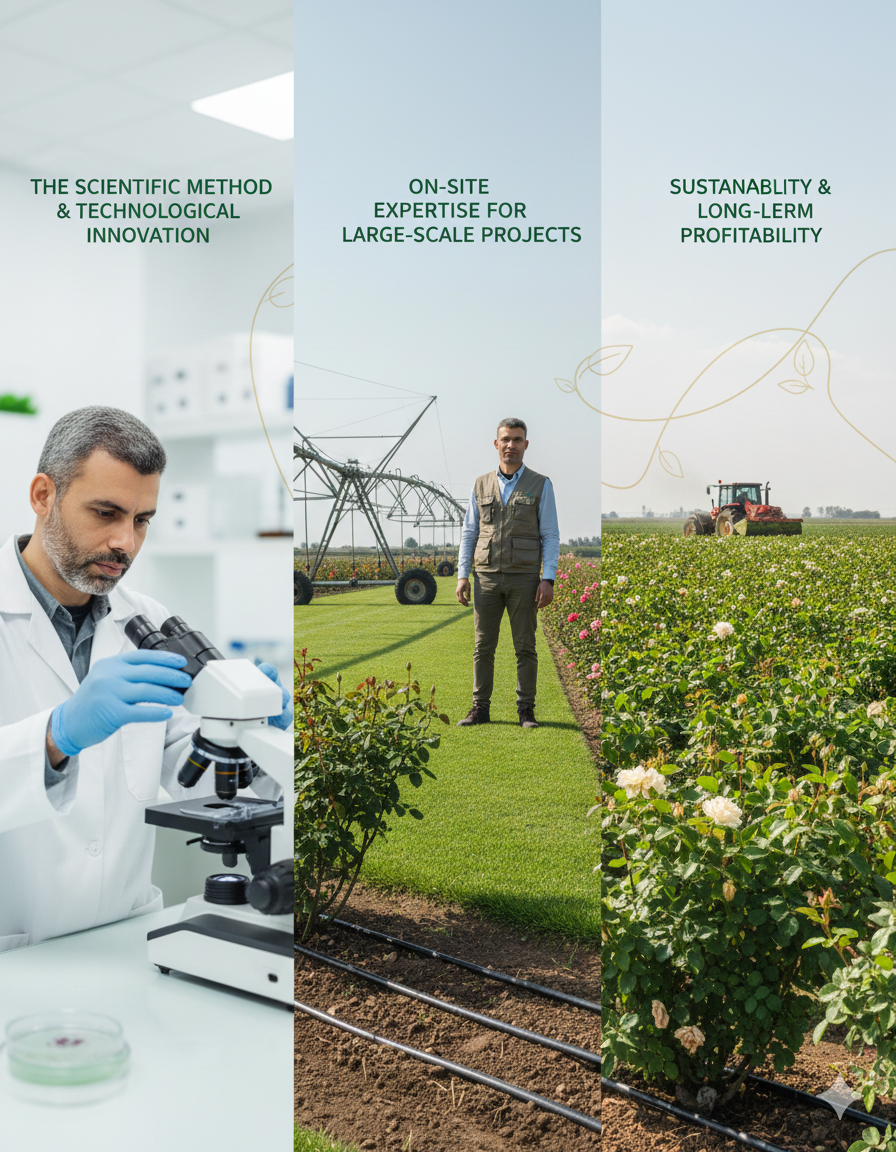 نتكفل بتنفيذ المشروع بنظام "تسليم مفتاح"، بدءاً من استصلاح الأرض وتركيب شبكات الري المانيوال والأوتوماتيك، وتوريد المواد والمعدات الزراعية، مع ضمان أعلى معايير الجودة في كل خطوة.