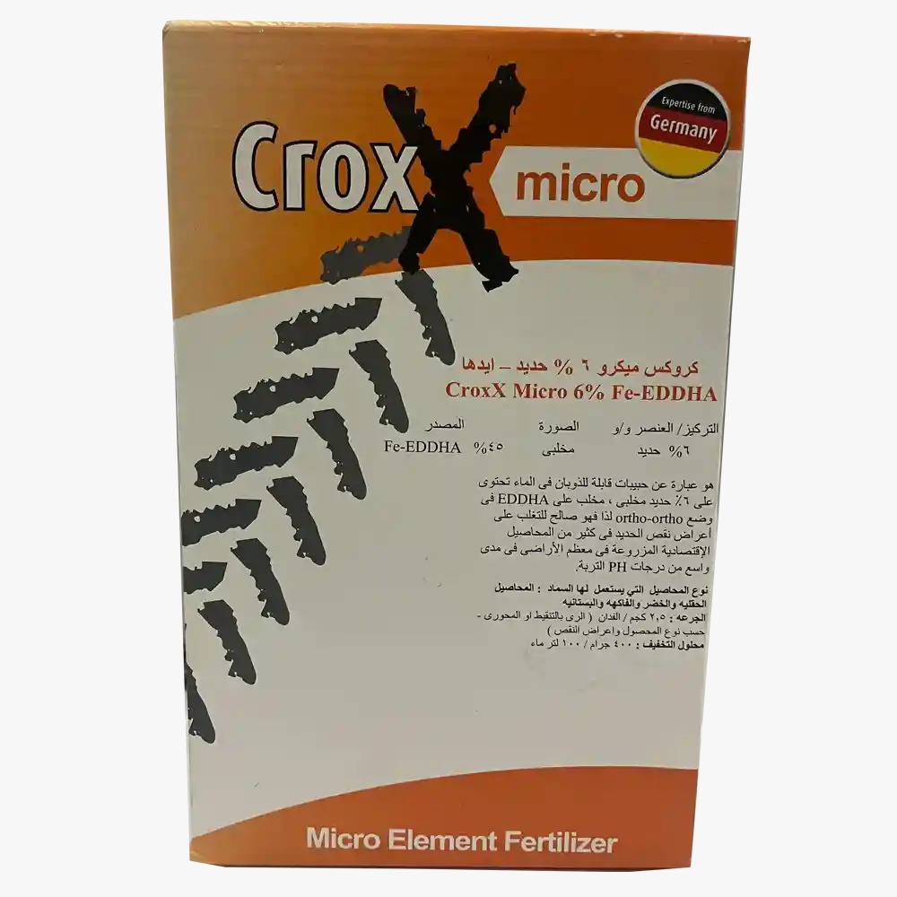 كروكس ميكرو 6% حديد المانى وهو عبارة عن حبيبات قابلة للذوبان فى الماء يحتوى على 6% حديد مخلبى . مخلب على