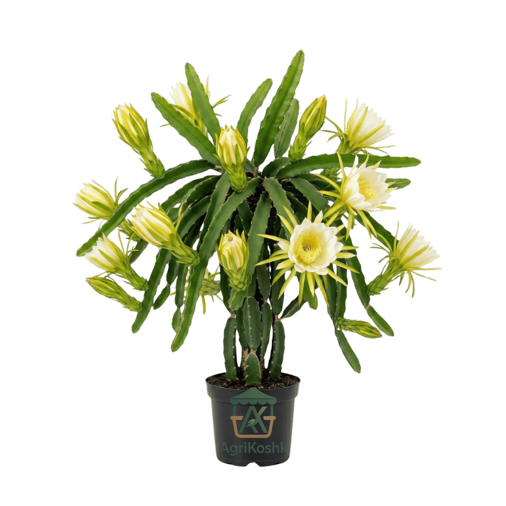 صباره الدراجون فروت من أجري كشك: قطعة من الاستوائيات في منزلك في “أجري كشك”، بنقدم لك نبات صبار الدراجون فروت، وهو النبات اللي بيدي سحر خاص لأي مكان بيتحط فيه. صباره مميز بأضلاعه الثلاثة وتفريعاته الكثيرة، وزهوره اللي تعتبر من أجمل وأكبر الزهور في العالم.