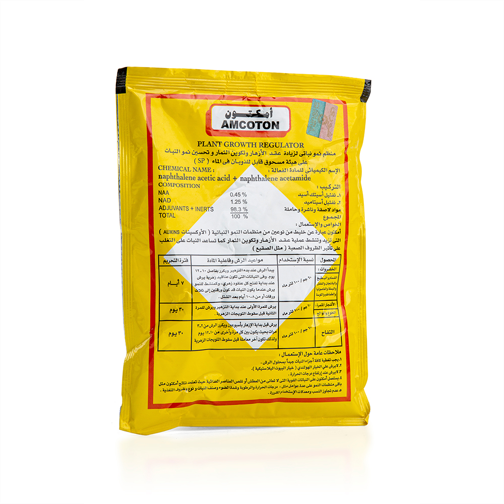 أمكتون هرمون نمو نباتي مخلق ذات تأثير فسيولوجي فى تنشيط نمو النبات ودفعها للتزهير وزيادة نسبة العقد وتحسين جودة الثمار مما يؤدى الى زيادة إنتاجية وجودة المحصول ويستخدم أمكتون رشا على النباتات في مراحل ثلاثة :
